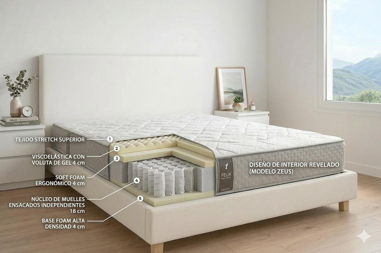 - Silencio Absoluto: Al carecer de muelles, el colchón Zen no genera ningún tipo de ruido mecánico, asegurando un entorno de sueño 100% tranquilo.