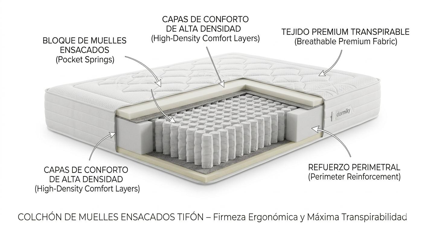 Colchón de Muelles Ensacados Tifón – Firmeza Ergonómica y Máxima Transpirabilidad