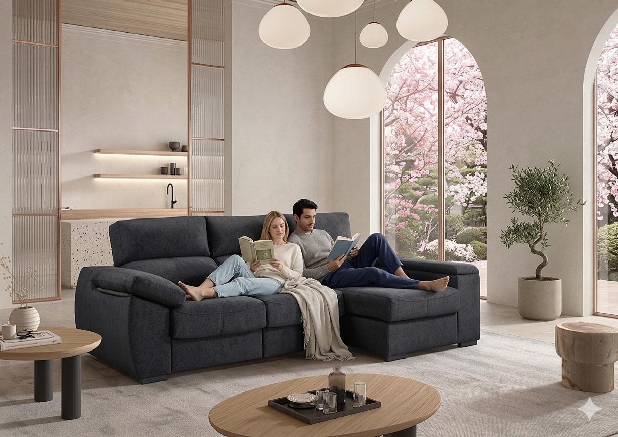 Transforma tu salón en un oasis de paz con el sofá chaiselongue Sakura. Con un diseño minimalista de líneas depuradas y asientos extraíbles de gran fondo, es el aliado perfecto para momentos de relax en pareja. Su tapizado en color gris marengo y su estructura robusta combinan estilo nórdico y funcionalidad máxima. Ideal para quienes buscan un sofá cama ocasional sin renunciar a la elegancia.