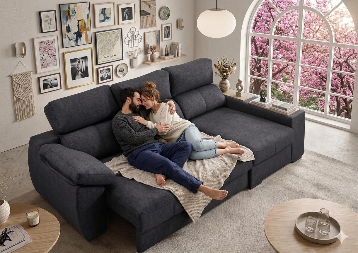 En un hogar moderno, el salón es el refugio. Este sofá ha sido diseñado para maximizar el bienestar, permitiendo que una pareja pueda estar cómodamente recostada gracias a su generosa profundidad. Su tejido de fácil limpieza asegura que la belleza del mueble perdure en el tiempo.