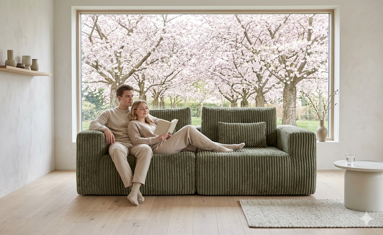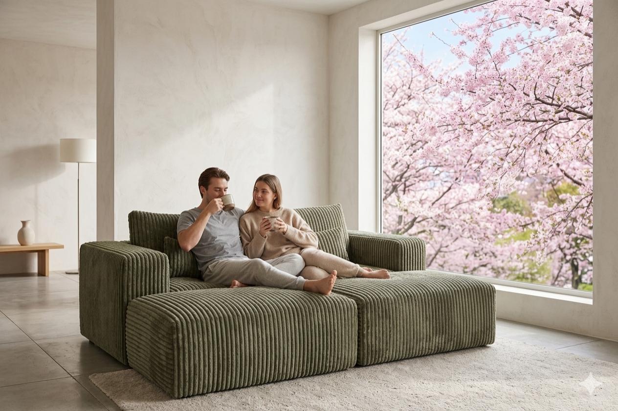 Sofá Modular de Pana Gruesa "Nature Comfort" – Diseño Ergonómico en Verde Oliva